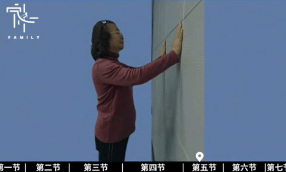 面对墙壁站立,双脚与肩同宽;将双手放在墙面上,位置应该与肩同宽或略宽,弯曲肘部,并慢慢向前倾斜身体,靠近墙面后缓慢推开墙面,使手臂缓慢伸直,重复15次,每次重复5组。